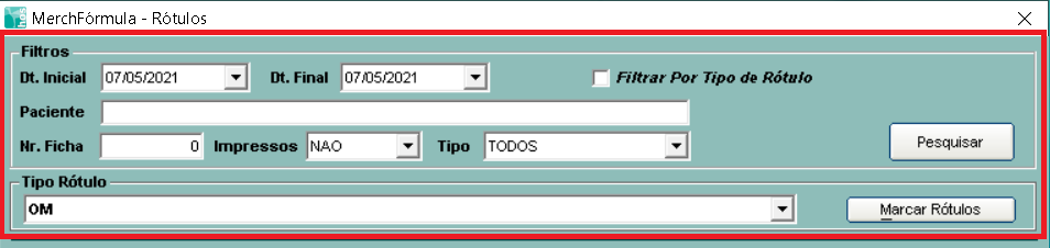 Impressos -> SIM: busca rótulos que já foram marcados como impressos; NÃO: busca rótulos que estão marcados como Não impressos. AMBOS: busca todos, impressos e não impressos.