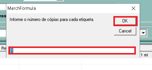 O sistema vai perguntar o número de cópias para aquele rótulo que será impresso.