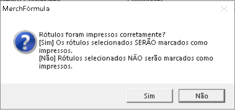 Não -> Mantém a etiqueta na tela, para ser realizada uma nova impressão.