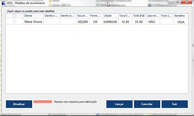 Para gerenciar os pedidos realizados através do aplicativo E-commerce, será utilizando o programa "HOSMobileEcommerceGerenciador.exe", é interessante criar um atalho para área de trabalho. Através dele sera possível lançar os pedidos, ao clicar em "Lançar" ele irá cair na tela de Orçamentos do Farma e o fluxo será normal, caso clique em Cancelar, irá subir um retorno e cancelamento para o App.