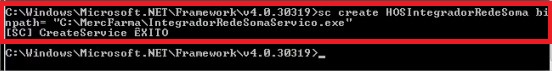 sc create HOSIntegradorRedeSoma binpath= "C:\Mercfarma\IntegradorRedeSomaServico.exe"