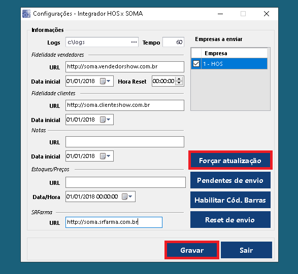 Clicar em Gravar e depois Forçar Atualização