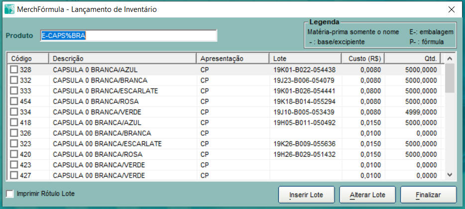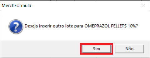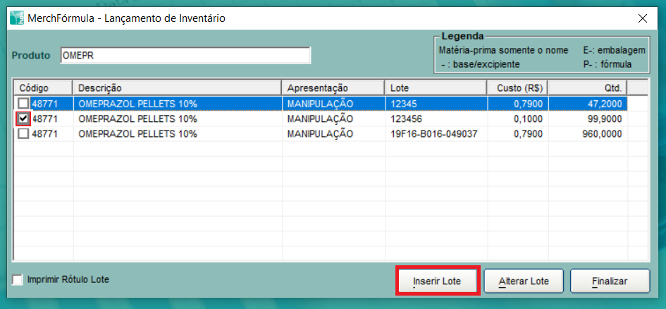 Marcar o item e clicar em Inserir Lote