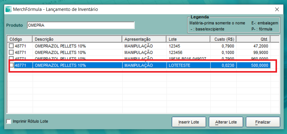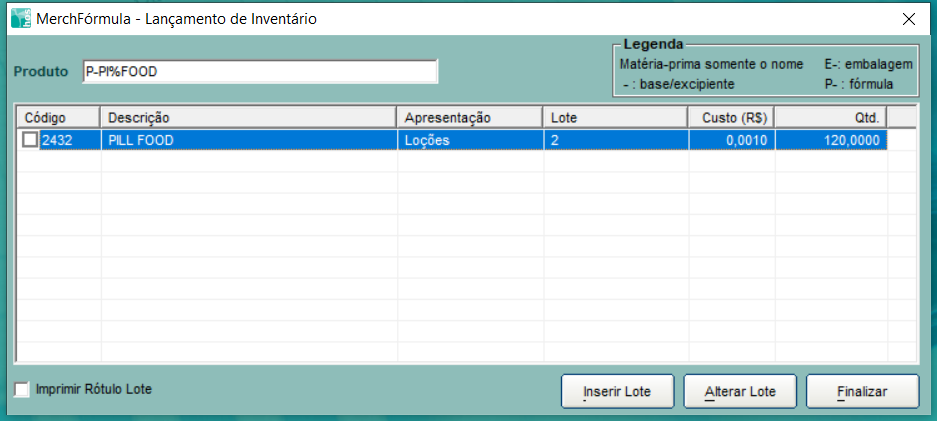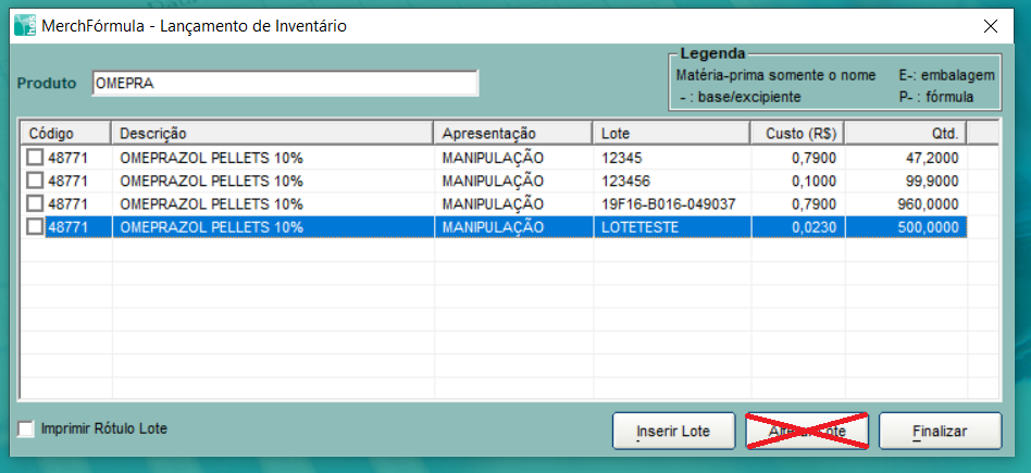 Somente pode ser realizado um lançamento de lote de matéria prima controlada quando há a finalização do inventário na Anvisa para posterior reenvio.