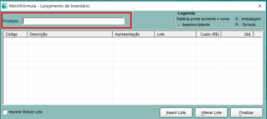 Para pesquisar Embalagens (internas ou componentes das externas), colocar um E-.