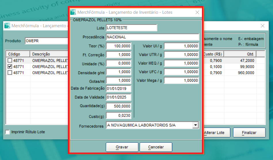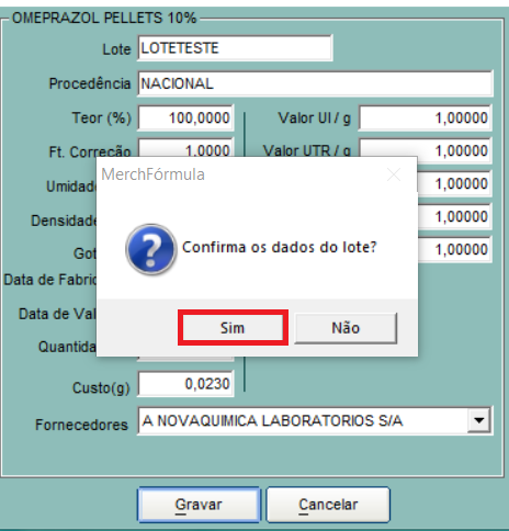 Nesta tela o sistema solicita as informações do Lote e Laudo Técnico