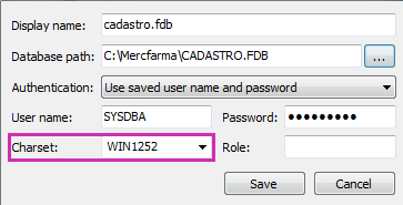 1 - No FlameRobin, registramos o banco com Charset=Win1252