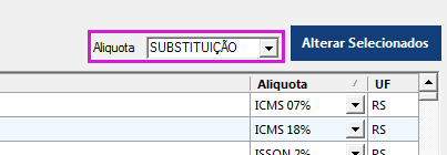 Após marcar os itens e informar a alíquota, clicar em Alterar Selecionados.