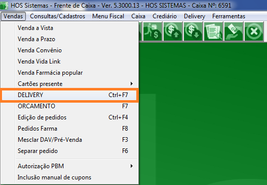 Após a solicitação da liberação do CNPJ e configuração por parte dos técnicos da HOS, já é possível usar o módulo de Tele Entregas (Delivery).