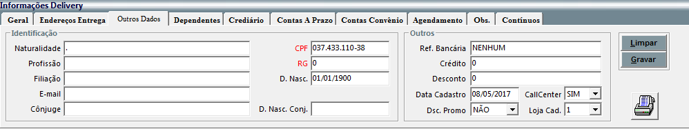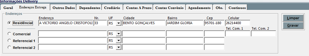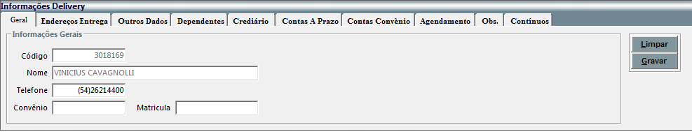 na primeira aba são exibidas as informações básicas do cliente selecionado,