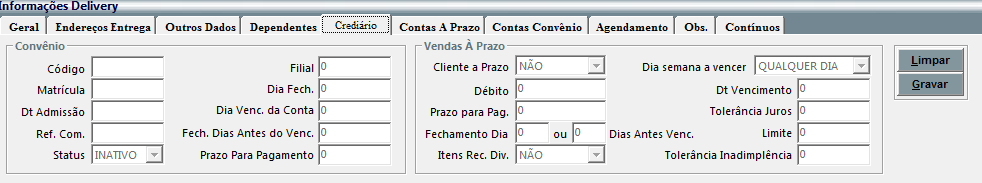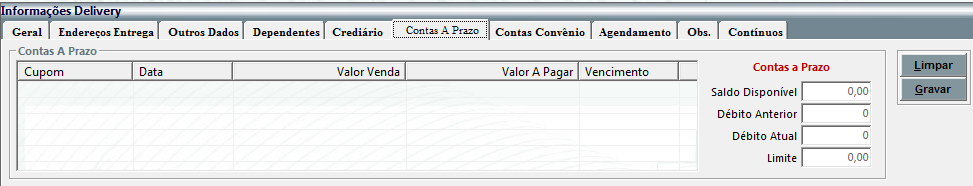 Na parte inferior existe a seção Informações Delivery, onde