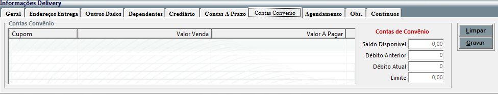 porém das contas convênio do cliente.