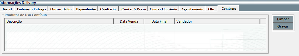 contínuo cadastrados para o cliente, gerando a informação sobre o que o cliente