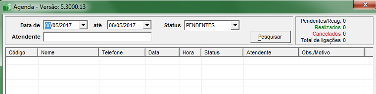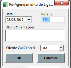 E então será apresentada esta tela para re-agendamento de ligações, caso for necessário.