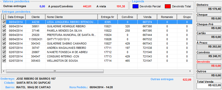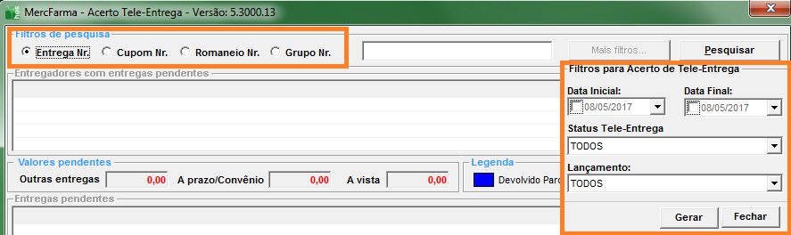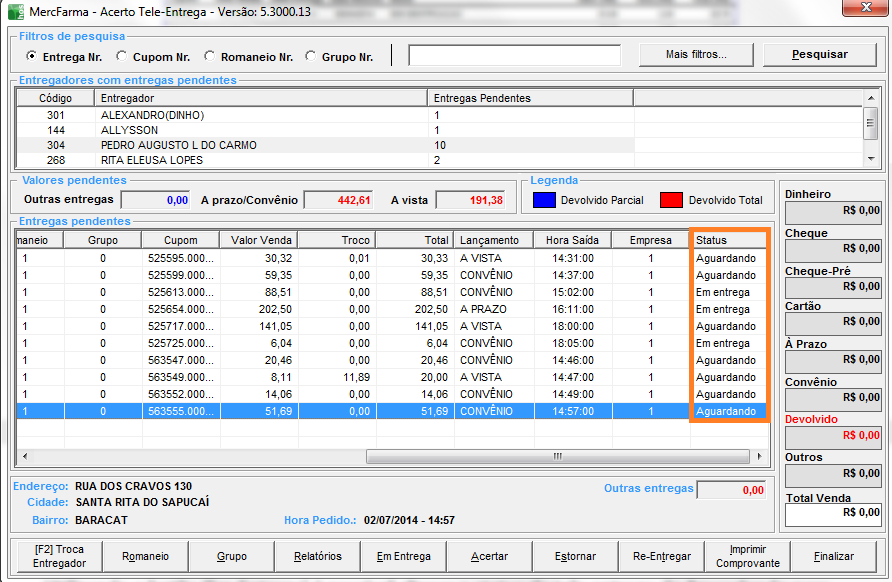 Dentro desta tela de acertos de tele entrega, é possível