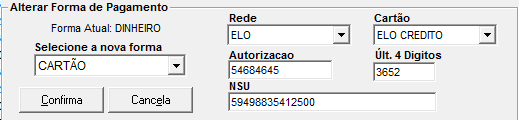 distinguindo a forma de pagamento.