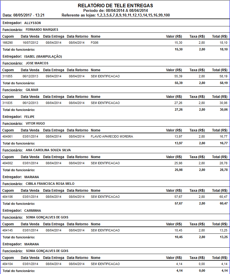 para as mesmas, assim na hora de acertar com os entregadores, torna o processo