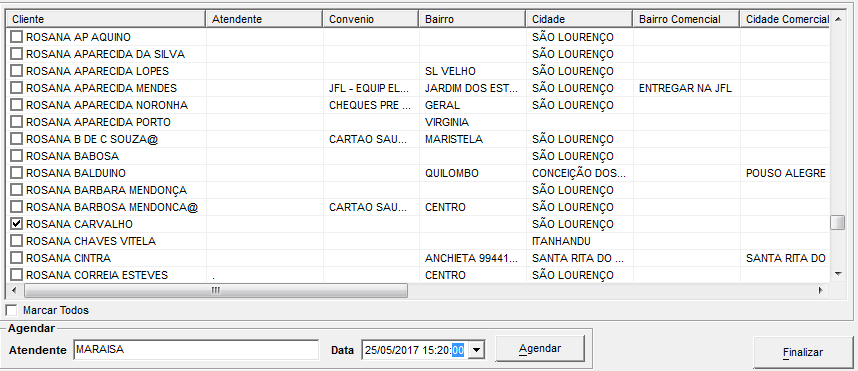 Após os clientes serem listados, é só marcar o desejado e