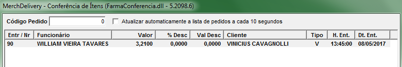 No Menu Delivery > Conferência de Pedidos, é possível