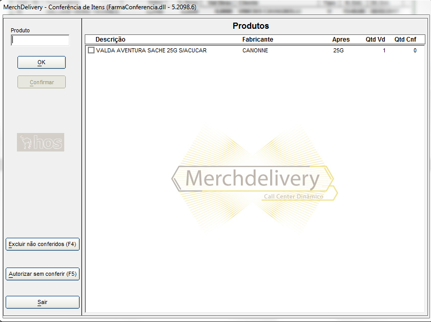 Também pode-se usar F4 para excluir da entrega os produtos