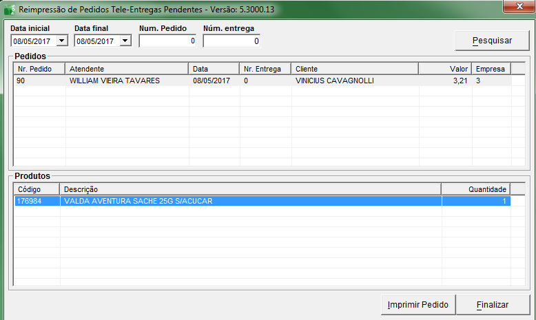 No próximo menu, Delivery > Reimprimir Pedidos Pendentes,