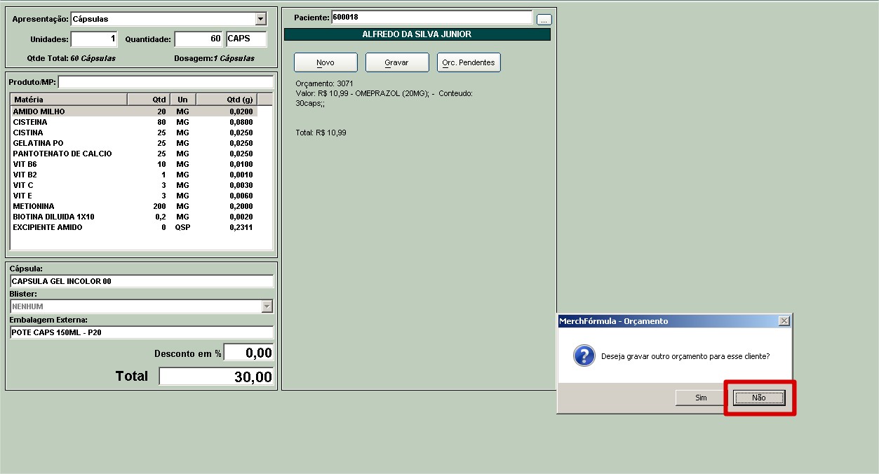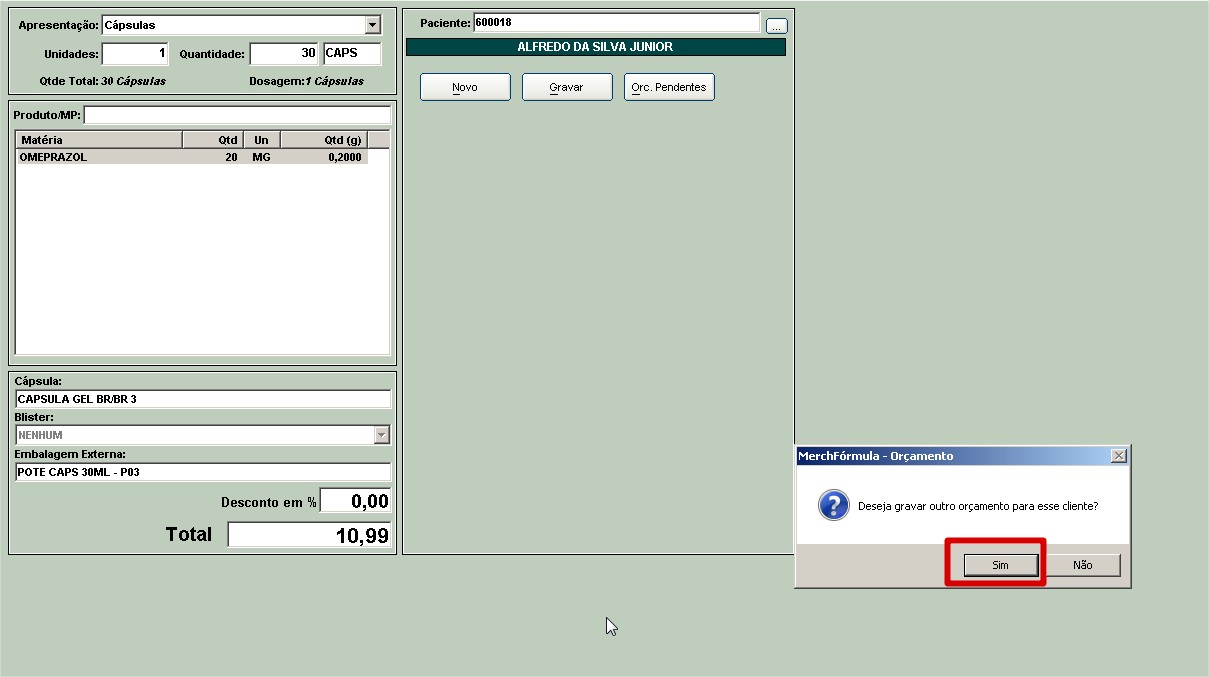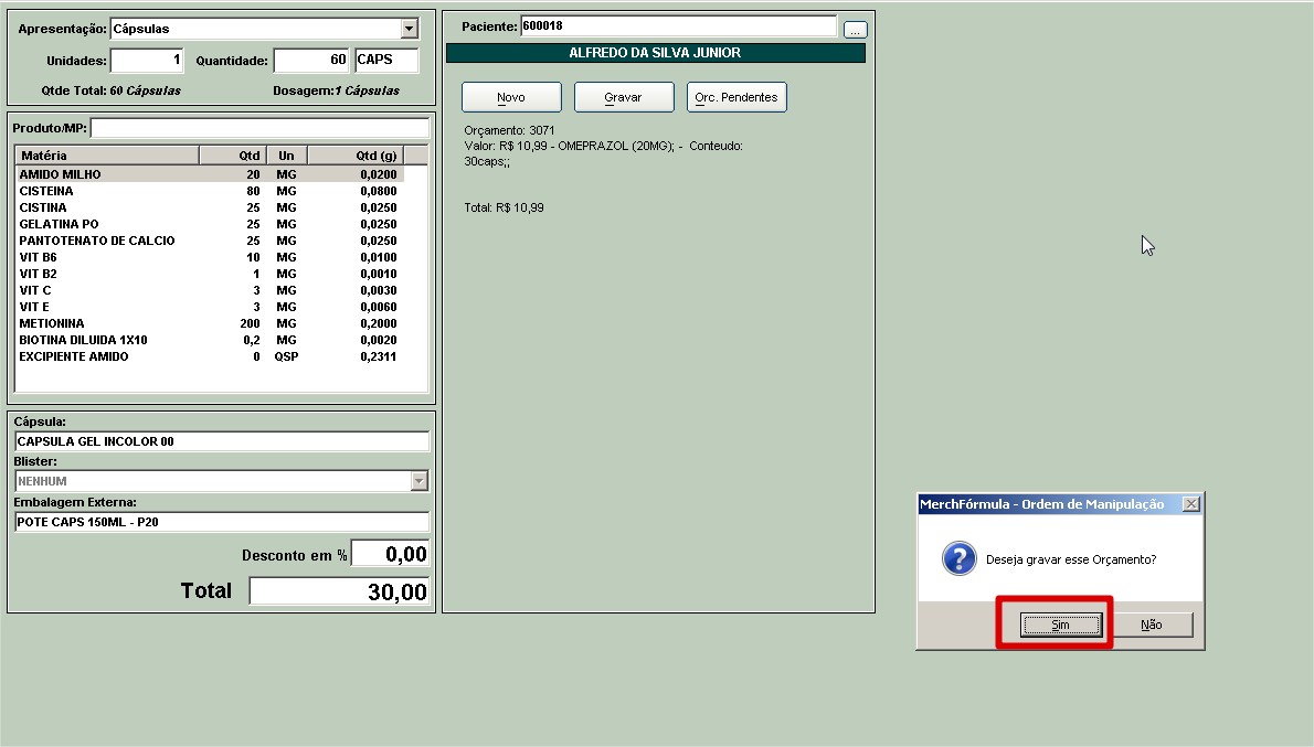 Se o cliente confirmar, o operador só deve ir no MerchFórmula e gerar as Ordens de Manipulação a partir desse orçamento.