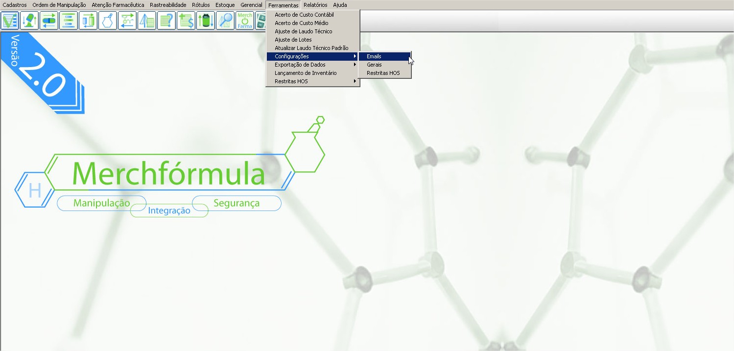 A configuração referente a rotina é restrita no MerchFórmula. A farmácia deve possuir uma conta de email a qual o MerchFórmula ficará integrado e ficará lendo se chegou um novo Email. Segue caminho da configuração abaixo: