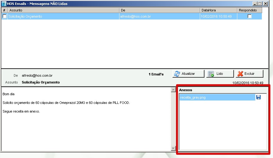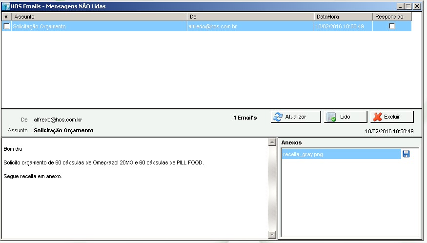 SoluçãoA rotina tem o intuito de agilizar o processo de recebimento de solicitações de orçamento que as farmácias de manipulação recebem por email. Com essa rotina, o sistema ficará alertando se um novo email chegou no endereço configurado no sistema, tendo a farmácia mais chances de responder agilmente com o intuito de atender o cliente e não deixando margem para a concorrência.