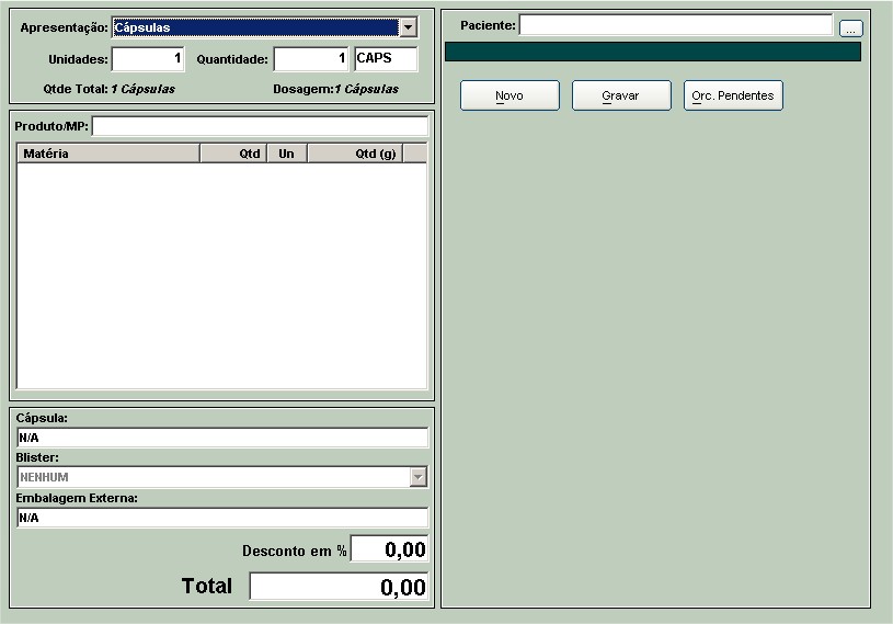 Logo, o operador só deve digitar as fórmulas solicitadas pelo cliente como se fosse um orçamento normal.