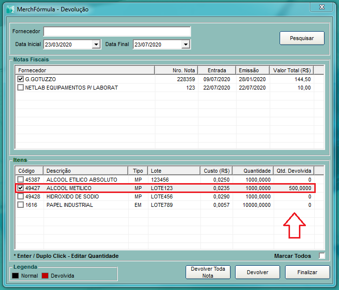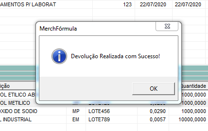 Após informar a quantidade, clico no botão Devolver.