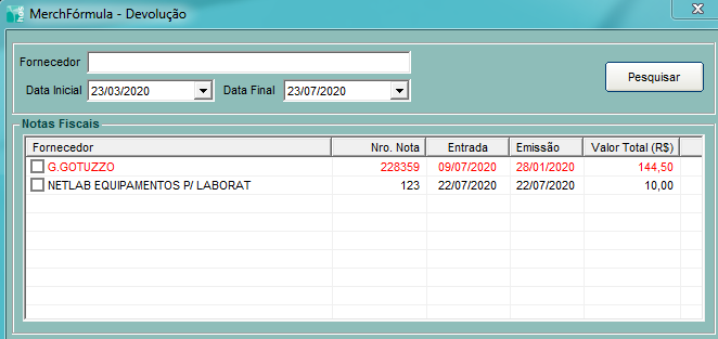 O sistema deixará esta nota na cor vermelha, indicando que a mesma já teve um processo de devolução..