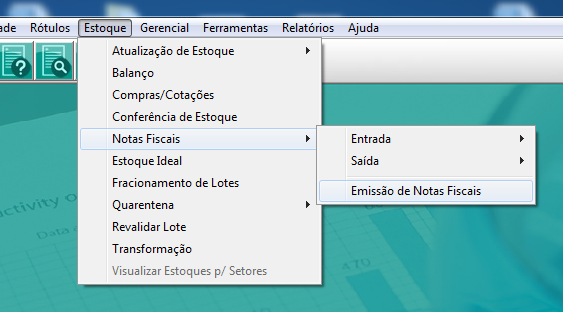 Acessar: Estoque >> Notas Fiscais >> Emissão de Notas Fiscais
