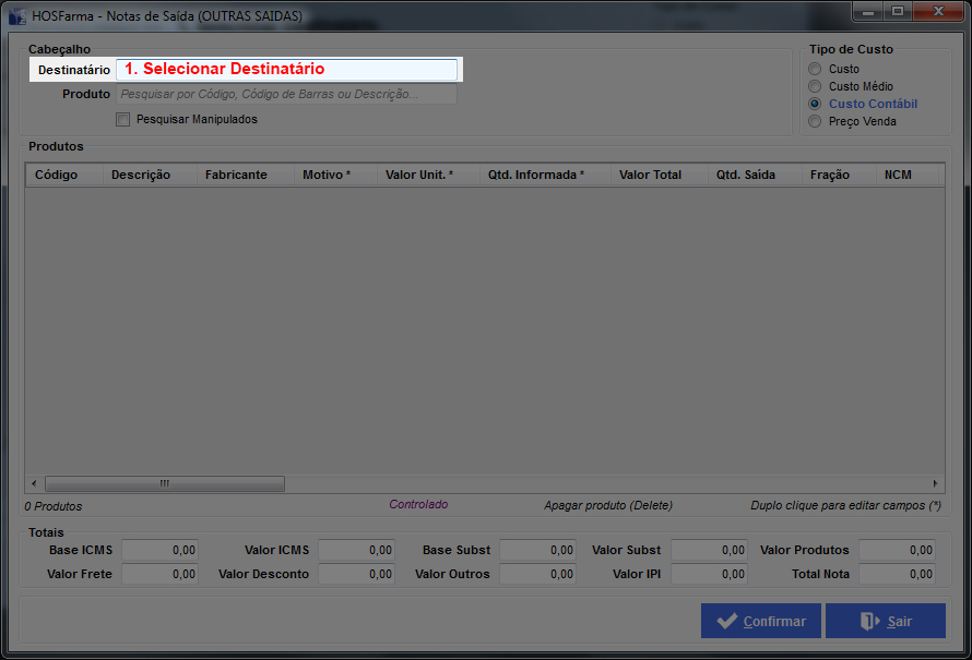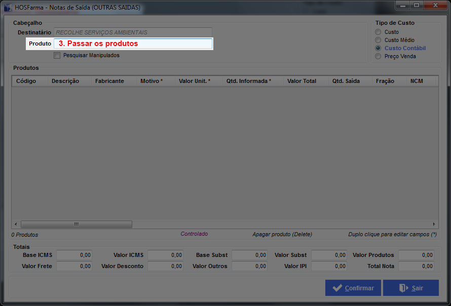 Farma - Estoque/Preços - Notas Fiscais - Nota Fiscal de Outras Saídas.
