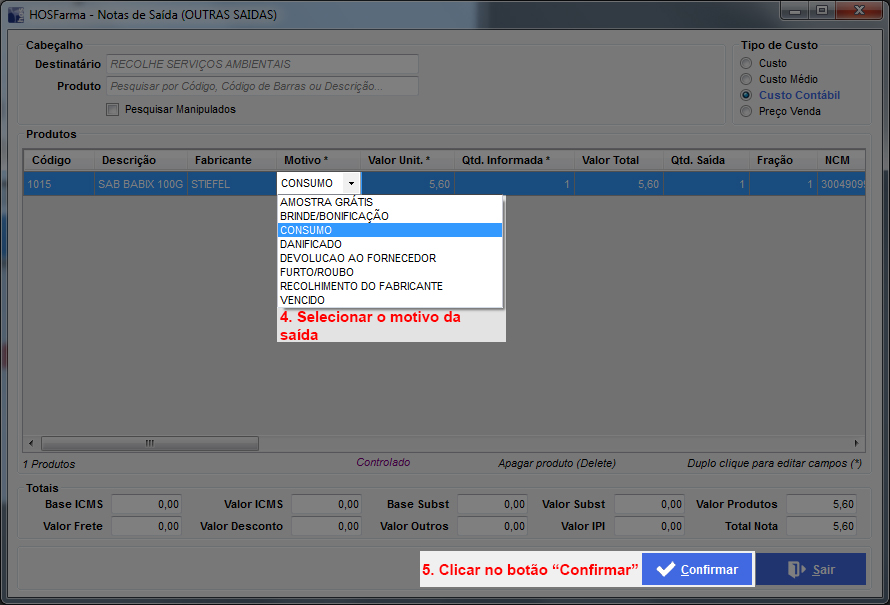 Consumo: Uso interno da farmácia ex: material de higiene, escritório, entre outros;