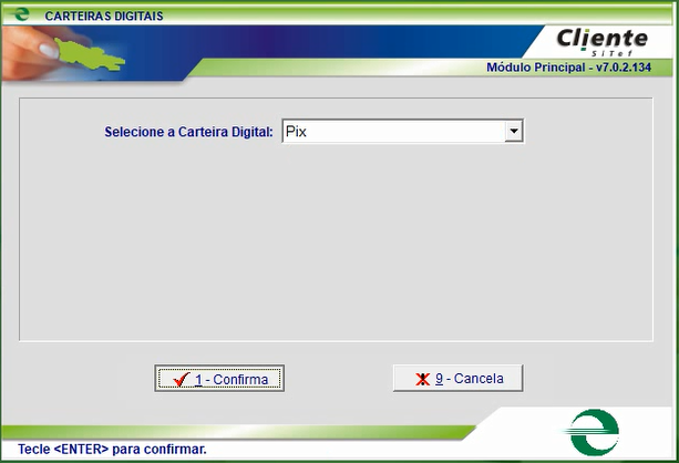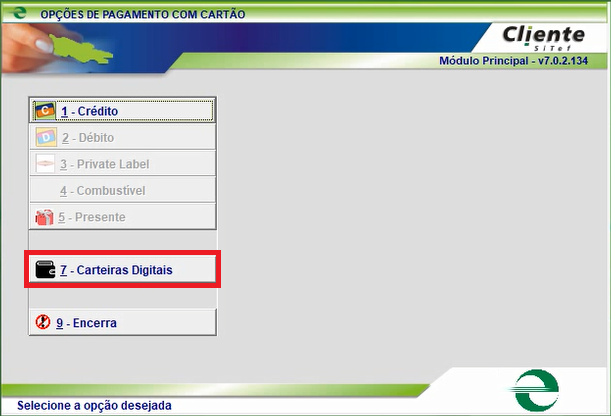 Escolher a opção de Carteiras Digitais ou pressionar F7