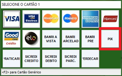 - A farmácia deverá cadastrar um cartão para adicionar a opção PIX na tela dos cartões na finalização da venda. Para quem atualizar o Sistema HOS, colocamos na atualização a criação desse cartão, então, nesses casos não há a necessidade da farmácia cadastrar.