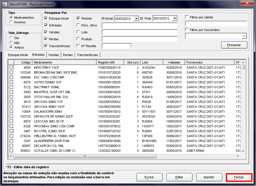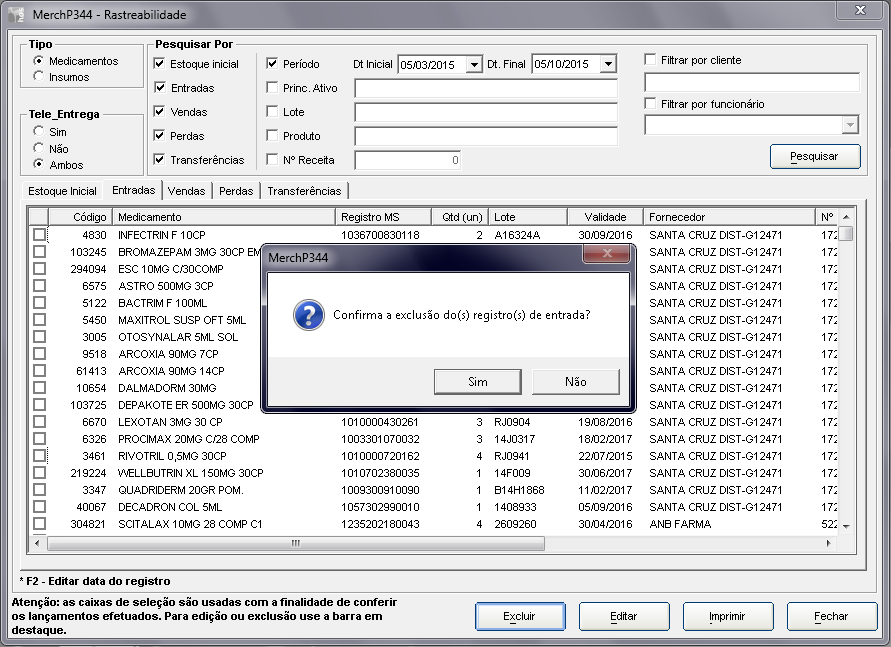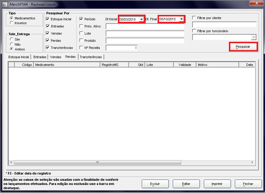 Pressione F2 para alterar a data dos registros selecionados, pelos campos que surgirem.