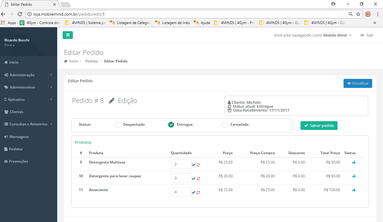 Nesta tela, temos uma listagem com todos os pedidos realizados no sistema.