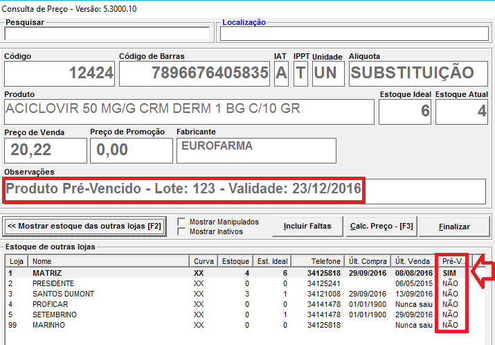 Em Estoque/Preços – Validades – Pré-Vencidos