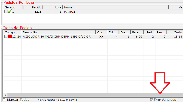 pré-vencidos do pedido para decidir se exclui ou altera quantidades