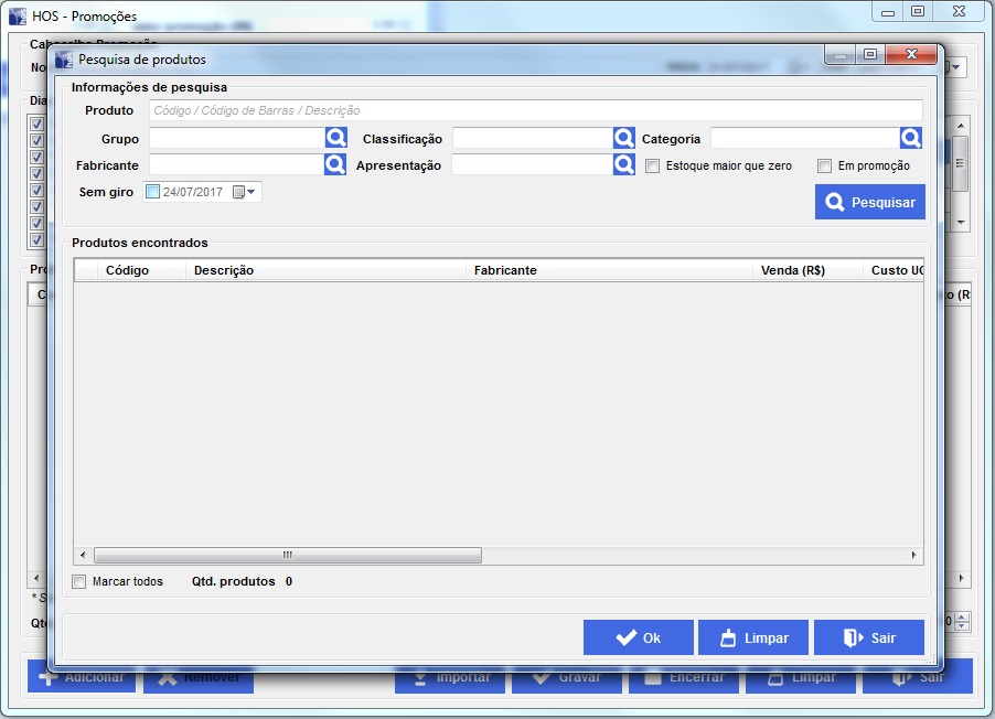 Em promoção: Caso esteja marcado o sistema vai trazer os produtos que já estão em outras promoções.