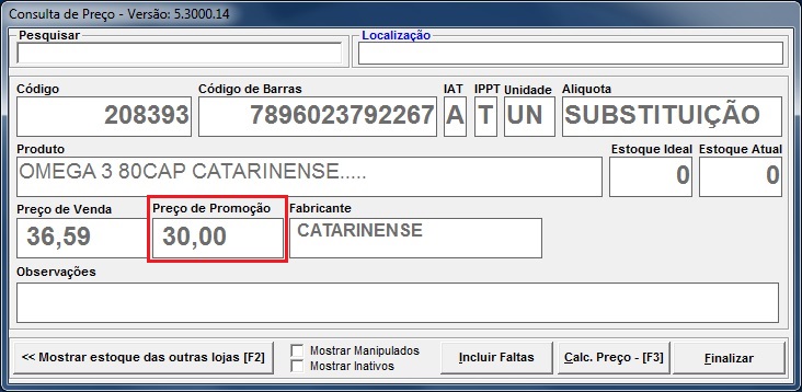Agora os produtos já estão na promoção, pesquisando-os no F9 ou realizando uma venda o sistema já vai informar o valor da promoção.