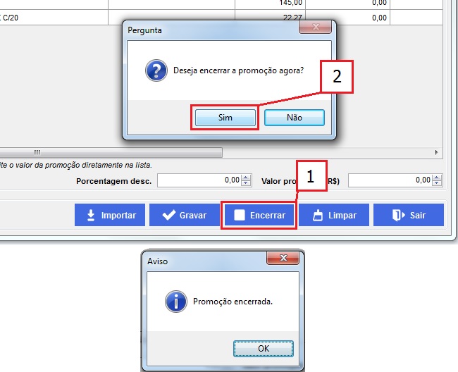 10.3 Depois dos produtos carregados, clicar em "Encerrar", Sim > OK