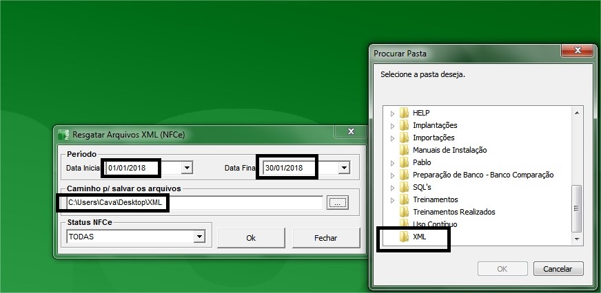 Solução1º - Para resgatar os arquivos XML NFCe primeiramente é necessário criar uma pasta onde será salvo os arquivos.