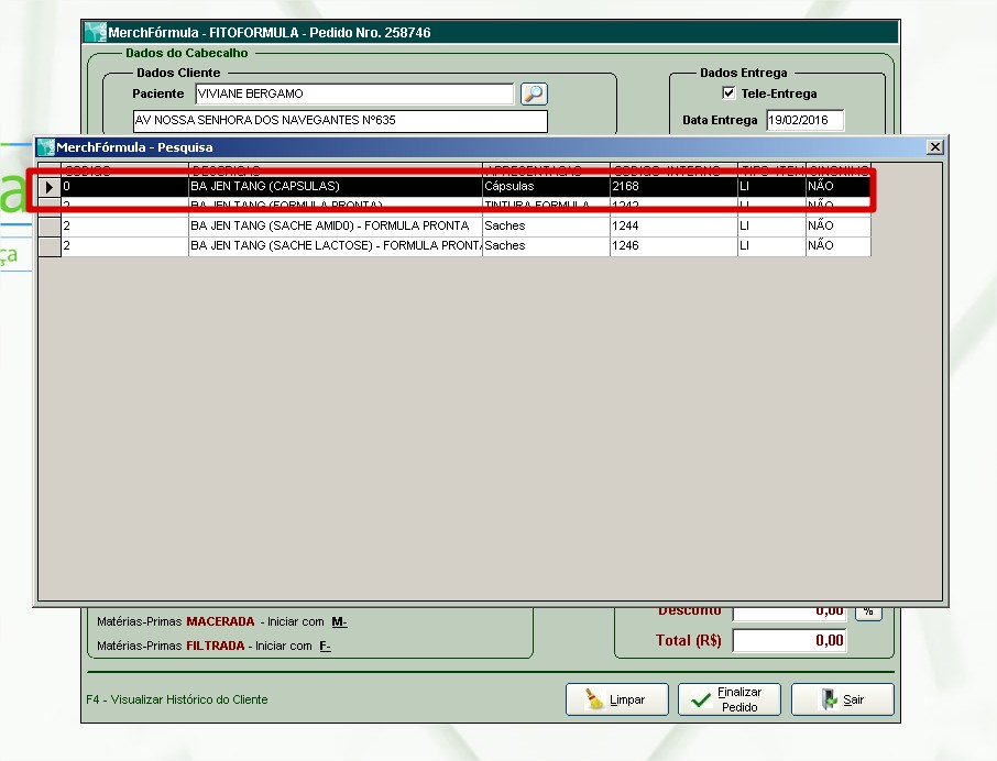Após esses processos, os potes de cápsulas já podem ver vendidos na tela de pedidos.