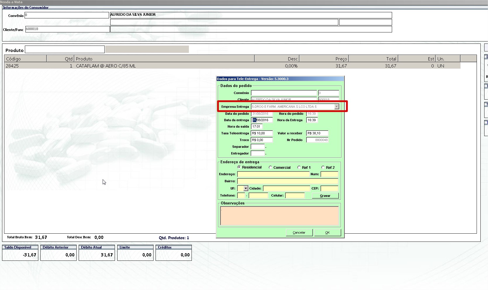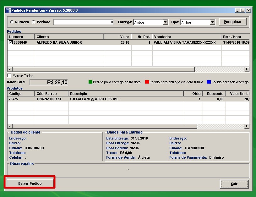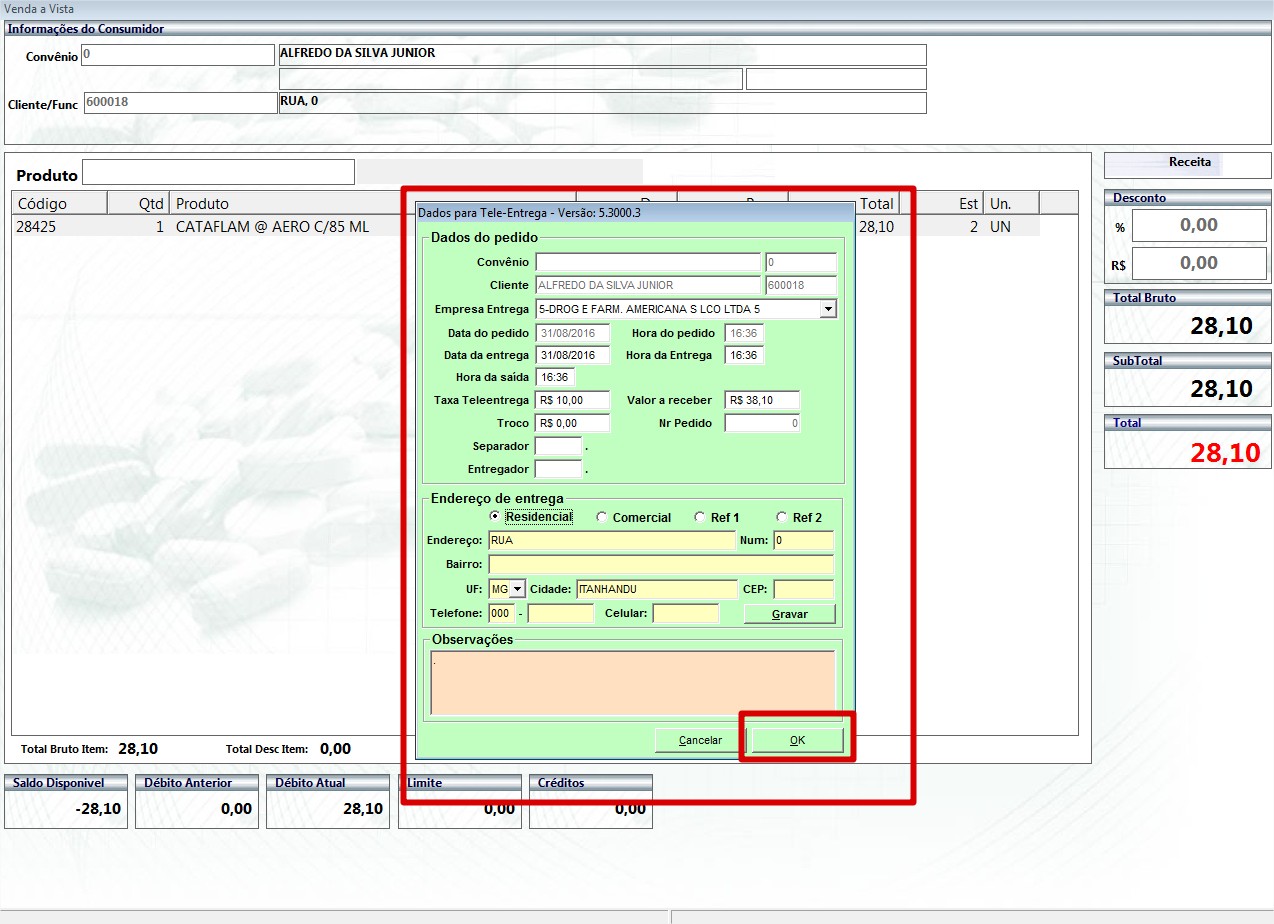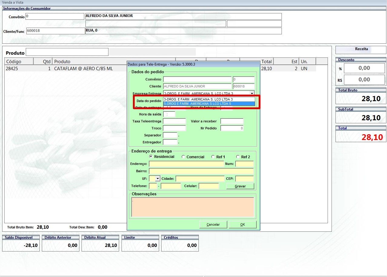 OBS 2: É muito importante que as lojas estejam com os cadastros homogêneos entre si, principalmente os cadastros e precificações, não podem existir diferenças entre elas, pois senão a loja que captará a tele-entrega dirá um processo ao cliente e a loja da baixa do pedido terá outro preço.