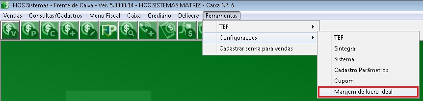 1. Frente de Caixa - Ferramentas - Configurações - Margem de Lucro Ideal.