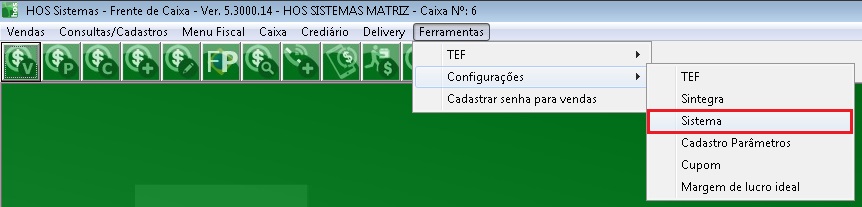3. Frente de Caixa - Ferramentas - Configurações - Sistema