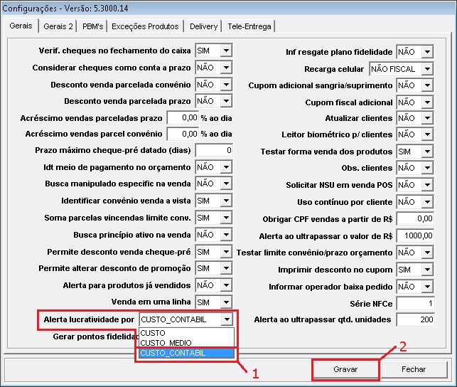 Alerta lucratividade por custo contábil.