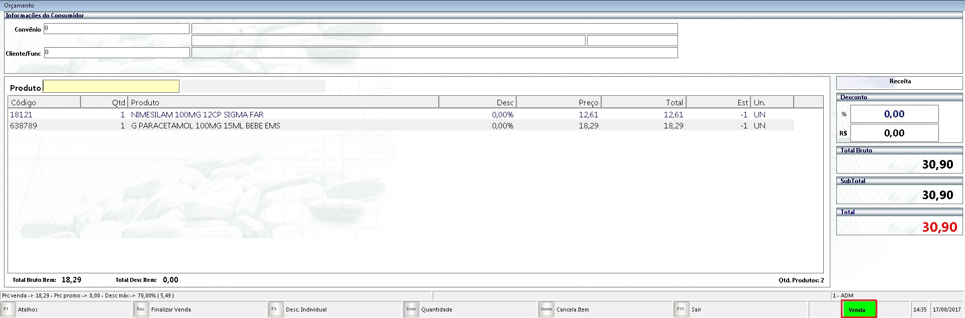 4. Exemplos na tela de venda: